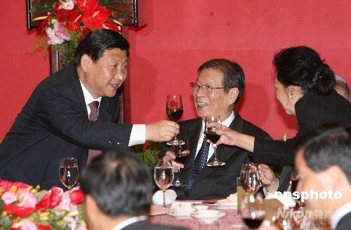 圖為習(xí)近平副主席向董建華夫人董趙洪娉女士敬酒。中新社發(fā) 武仲林 攝