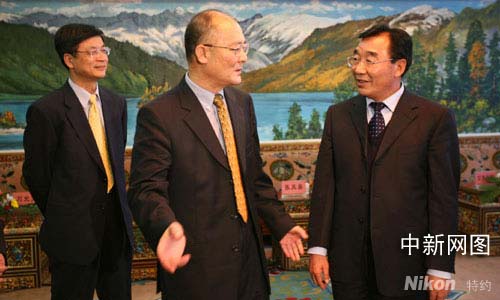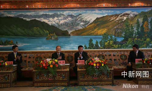 圖為西藏自治區(qū)黨委書記張慶黎、自治區(qū)黨委常委、秘書長公保扎西會(huì)見趙陽、劉北憲一行。賈長飛 攝影