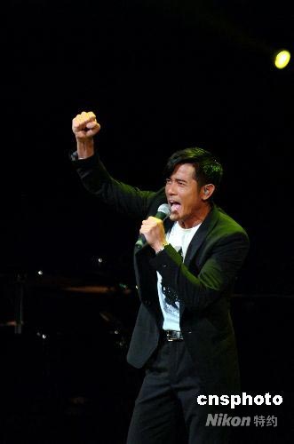 圖為郭富城高歌一曲《強(qiáng)》,為四川加油。中新社發(fā) 朱沿華 攝