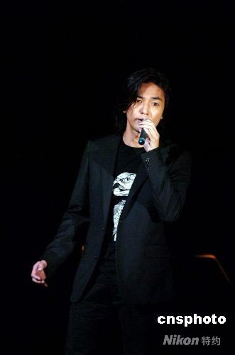 圖為著名歌星鄭伊健在義演現(xiàn)場演唱《風云》。中新社發(fā) 朱沿華 攝