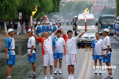 奧運(yùn)火炬吉林市傳遞 滿(mǎn)文軍、杜建華交接火炬