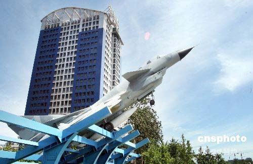 2008年7月17日,殲十飛機(jī)景觀工程在中國(guó)航空工業(yè)第一集團(tuán)公司總部前“一航花園”隆重揭幕。這標(biāo)志著殲十飛機(jī)景觀工程正式落戶朝陽(yáng)CBD。這架殲十是完全根據(jù)真機(jī)的一比一高仿模型,機(jī)上細(xì)節(jié)分毫畢現(xiàn)。殲十作出大仰角爬升的姿態(tài),翼下掛有國(guó)產(chǎn)雷石6滑翔制導(dǎo)炸彈、霹靂9C近距格斗空空導(dǎo)彈及霹靂12中距空空導(dǎo)彈。中新社發(fā) 博芽影像 攝
