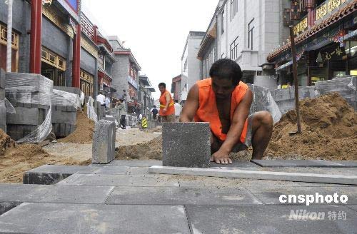 前門(mén)大柵欄步行街緊鑼密鼓的開(kāi)始了道路鋪設(shè)作業(yè)。屆時(shí),古老的大柵欄步行街將煥然一新面向海內(nèi)外游客。中新社發(fā) 王宇婷 攝