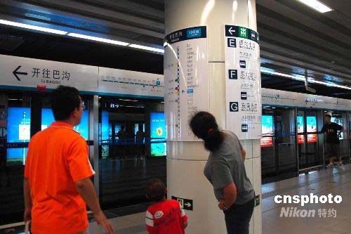 7月19日,北京軌道交通機場線、地鐵10號線(一期)、奧運支線等三條線路試運營開通。地鐵10號線是連接北京東部和北部的一條重要軌道線路,一期全長25公里。圖為在地鐵10號線芍藥居車站中,乘客觀察站牌。中新社發(fā) 張雙雙 攝