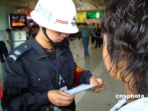 七月二十一日上午,昆明市內(nèi)發(fā)生兩起公交車爆炸案,導(dǎo)致二人死亡,十四人受傷。目前云南省交通、鐵路、民航公安機(jī)關(guān)加強(qiáng)了相關(guān)安全防范措施。邊防部隊(duì)已部署各邊境口岸、通道的管控工作,加強(qiáng)對(duì)嫌疑人員盤查檢查,力爭發(fā)現(xiàn)線索查獲犯罪嫌疑人,防止犯罪嫌疑人逃往境外。圖為昆明機(jī)場安保人員正在執(zhí)行安全檢查工作。中新社發(fā) 楊洋 攝