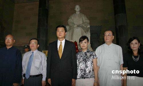 臺(tái)北縣長(zhǎng)周錫瑋率臺(tái)北縣南京參訪(fǎng)團(tuán)一行十人拜謁南京中山陵,在孫中山像前合影。中新社發(fā) 朱曉穎 攝