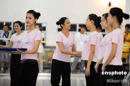 圖為禮儀小姐模擬頒獎(jiǎng)。中新社發(fā) 王東明 攝