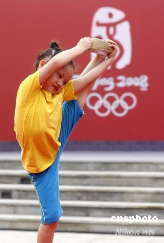7月27日,北京奧運(yùn)村正式開(kāi)村。一名參加表演的女孩在開(kāi)村儀式前做準(zhǔn)備活動(dòng)。 中新社發(fā) 杜洋 攝