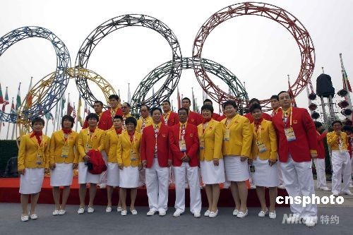 7月27日,北京奧運(yùn)村正式開(kāi)村。中國(guó)代表團(tuán)部分運(yùn)動(dòng)員(舉重、摔跤、柔道)在奧運(yùn)村合影。中新社發(fā) 杜洋 攝