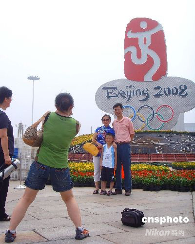 7月28日,北京天安門廣場奧運(yùn)中心花壇“中國印”正式亮相,成為京城奧運(yùn)花壇中一道最靚麗的風(fēng)景。過往游客紛紛在此拍照留影,記錄下這美好的時(shí)刻。中新社發(fā) 玉龍 攝