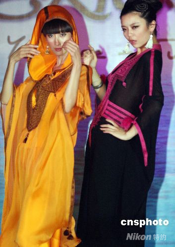 8月10日,第29屆奧運會在北京舉行之際,“突尼斯旅游文化周”在北京舉行,來自“突尼斯的藝術家、音樂家、舞蹈家、烹飪大師、商業(yè)代表以及政府代表組成的代表團,以音樂節(jié)、美食節(jié)、商務研討會等多種形式,為中國及各國各界的賓客呈現一個全方位、全視角、多層次、豐富多彩的突尼斯新形象。圖為模特展示突尼斯時裝設計師創(chuàng)作的服飾作品。中新社發(fā) 錢興強 攝