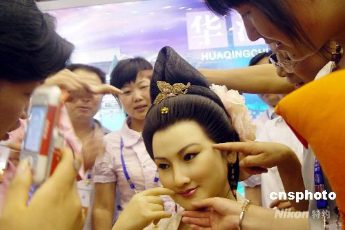 八月二十六日,仿真硅像“楊貴妃”吸引中外客商。當日,第五屆中國河南國際投資貿(mào)易洽談會在鄭州揭幕,來自美國、英國、德國、韓國、日本等七十多個國家和地區(qū)的一萬兩千余客商與會。中新社發(fā) 李志全 攝