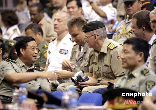圖為駐香港部隊司令員張仕波少將與武官團交流。中新社發(fā) 張勤 攝