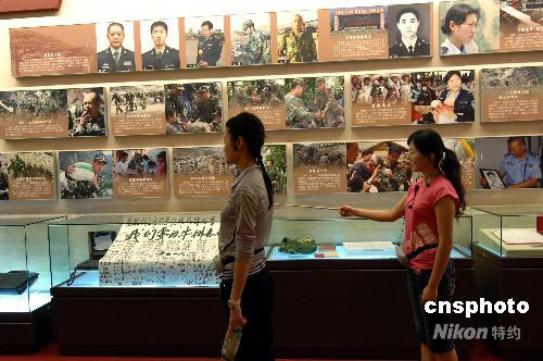 9月20日上午,中國人民革命軍事博物館青年講解員正在為“‘萬眾一心 眾志成城’--抗震救災(zāi)主題展覽”欄目背誦講解詞。由中共中央宣傳部、國家發(fā)展和改革委員會(huì)、解放軍總政治部共同主辦的此項(xiàng)展覽,將于9月21日正式對(duì)公眾開放。該展覽為汶川大地震后,北京舉辦的反映抗震救災(zāi)工作,規(guī)模最大,文物最多,圖片形象最為詳盡的展覽之一。中新社發(fā) 鄒憲 攝