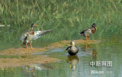 濕地公園里嬉戲的野鴨