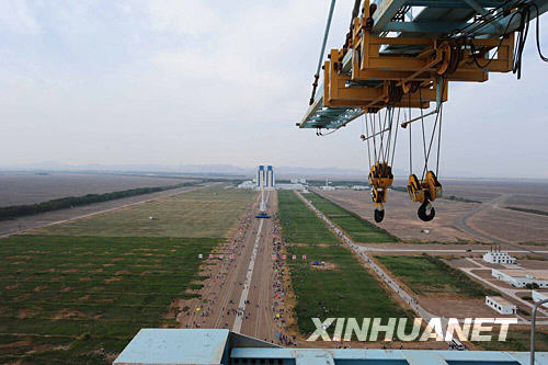 這是轉(zhuǎn)運(yùn)現(xiàn)場(chǎng)。 9月20日15時(shí)15分,神七載人飛船、長(zhǎng)征二號(hào)F運(yùn)載火箭和逃逸塔組合體,順利垂直轉(zhuǎn)運(yùn)至發(fā)射區(qū),標(biāo)志著神七任務(wù)已進(jìn)入最后的發(fā)射準(zhǔn)備階段。 新華社記者 李剛 攝