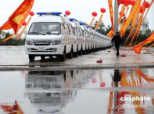 9月22日,在寧夏回族自治區(qū)成立50周年之際,中央政府向?qū)幭幕刈遄灾螀^(qū)贈送143輛救護(hù)車。這些救護(hù)車將用于寧夏基層醫(yī)療工作。中新社發(fā) 廖攀 攝