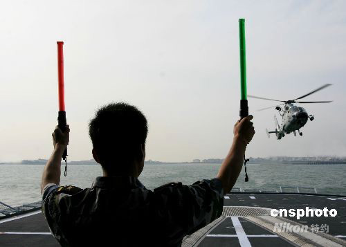 9月下旬,海軍某艦載機(jī)部隊(duì)載直升機(jī)進(jìn)行著艦訓(xùn)練。中新社發(fā) 鄢潤波 攝