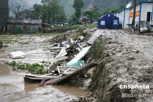 擂鼓鎮(zhèn)麻柳灣村三組泥石流現(xiàn)場(chǎng)。