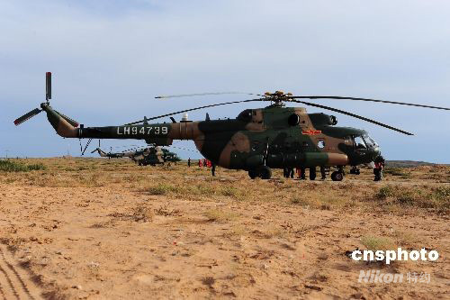 圖為擔(dān)負(fù)空中搜救任務(wù)的陸航直升機在主著陸場區(qū)待命。中新社發(fā) 周敬波 攝