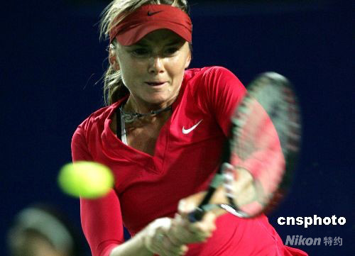 斯洛伐克美女選手漢圖楚娃以0比2不敵塞爾維亞選手揚(yáng)科維奇,無緣四強(qiáng)。中新社發(fā) 富田 攝
