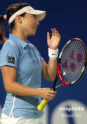 9月27日,2008年中國網(wǎng)球公開賽繼續(xù)女單半決賽的爭奪。在夜場的壓軸大戰(zhàn)中,中國選手鄭潔挑戰(zhàn)賽會4號種子俄羅斯姑娘庫茲涅佐娃,最終鄭潔不敵對手無緣決賽。中新社發(fā) 富田 攝