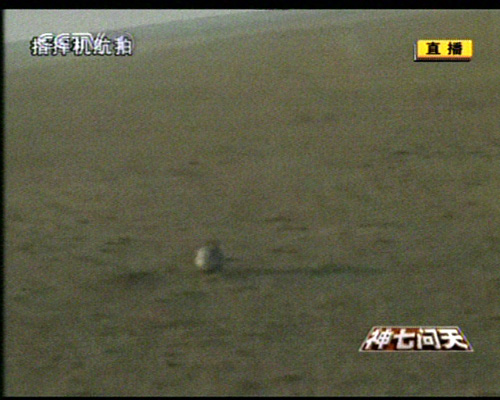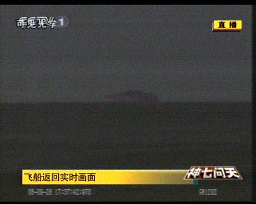 直升機(jī)拍到返回艙畫(huà)面。(電視截圖)