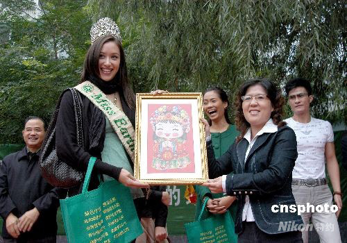 2008年10月6日下午,來自加拿大的“世界綠色環(huán)境大使”、2007“地球小姐”世界冠軍杰西卡和來自菲律賓的“世界綠色環(huán)境大使”、2006“地球小姐”季軍凱瑟琳及參加“地球小姐”世界綠色環(huán)保大賽中國總決賽的全國40位優(yōu)秀的“綠色天使”,來到南京綠色環(huán)保示范社區(qū)南湖沿河社區(qū),向社區(qū)居民宣傳環(huán)保知識并發(fā)放環(huán)保袋和無磷洗衣粉,受到社區(qū)居民的歡迎。中新社發(fā) 劉建民 攝