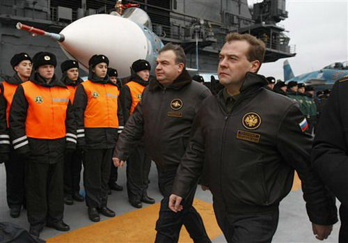 梅德韋杰夫登上航母觀看俄北方艦隊(duì)軍演