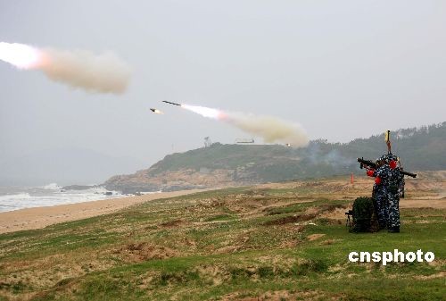 10月12日下午,海軍陸戰(zhàn)隊某旅在南海某海島組織某型防空導(dǎo)彈實彈射擊考核。是時,考核地域陰雨蒙蒙,風(fēng)大浪高,能見度低,很難清楚辨認航模靶機的具體目標方位。該旅導(dǎo)彈營官兵憑借平時所練就的扎實基本功,在惡劣的天候條件下,沉著冷靜,果斷尋找最佳戰(zhàn)機,捕捉目標,先后兩次兩發(fā)齊射,將航模目標打了個凌空開花,取得了4發(fā)直接命中的優(yōu)異成績,開創(chuàng)了海軍部隊首次實射該型導(dǎo)彈并全部命中的先例。中新社發(fā) 李唐 攝