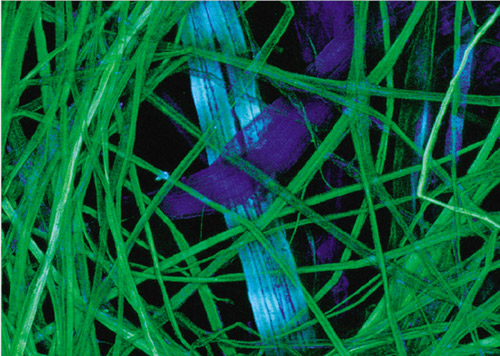 日本紙,查爾斯·卡茲勒克攝,放大100倍。圖片上展示的范圍比報紙上印刷的一個句號還小。拍攝技術(shù):共焦。