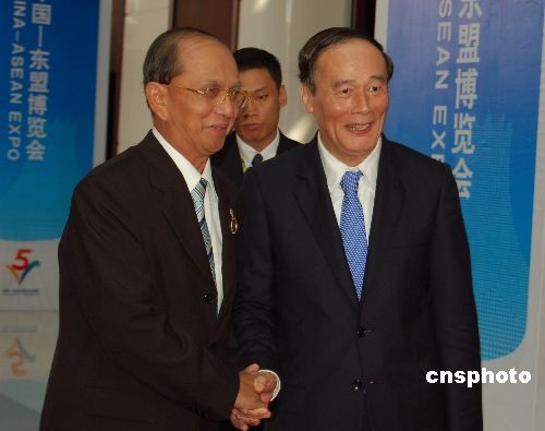 中國(guó)國(guó)務(wù)院副總理王岐山在廣西南寧會(huì)見(jiàn)了緬甸總理登盛一行。