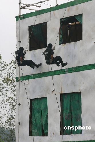 10月21日上午,遂寧市公安特警在進行反劫持人質演習。當天,四川遂寧市公安大練兵暨反恐演習舉行。中新社發(fā) 鐘 敏 攝