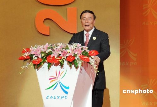 中國國務(wù)院副總理王岐山宣布中國—東盟博覽會(huì)開幕。