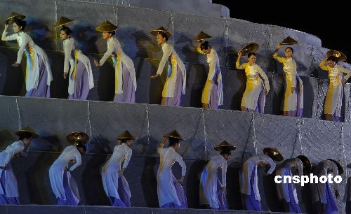 演員用舞蹈表現(xiàn)東盟成員國越南的鄉(xiāng)村之美。中新社發(fā) 蔣雪林 攝