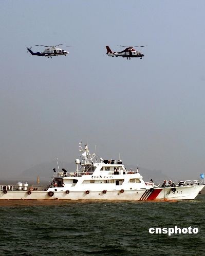 圖為直升機配合海上救助船只進行演練。中新社發(fā) 王東明 攝
