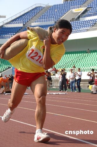 十月二十八日上午,云南隊(duì)蘇龍?jiān)谵r(nóng)運(yùn)會(huì)“男子六十米搶收糧食進(jìn)倉比賽”預(yù)賽時(shí),搶糧有術(shù)領(lǐng)先于對手。