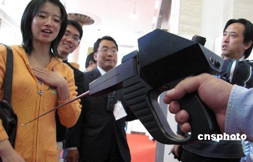 10月28日,“第十二屆國際消防設(shè)備技術(shù)交流展覽會(huì)”在北京全國農(nóng)業(yè)展覽館開幕。國際消防協(xié)會(huì)聯(lián)盟、世界義勇消防聯(lián)盟,及美國和日本消防協(xié)會(huì)、德國消防促進(jìn)會(huì)等國際知名消防組織參展。圖為曾在中國汶川地震中立下汗馬功勞的生命探測儀器,該儀器可探測出500米內(nèi)的人體生命,對人體心臟產(chǎn)生的微電磁波十分敏感,其探頭有自動(dòng)尋的功能。中新社發(fā) 鄒憲 攝