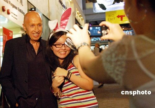 盛志文與女“粉絲”開心合影。中新社發(fā) 洪少葵 攝