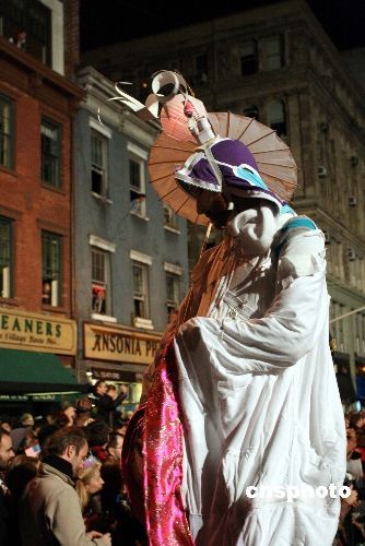 10月31日晚,第三十五屆“紐約格林威治村萬圣節(jié)游行”隆重登場(chǎng),曼哈頓六大道人山人海,盡管面對(duì)金融風(fēng)暴,但紐約客依然“群魔亂舞”,極盡瘋狂。中新社發(fā) 彭偉祥 攝