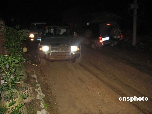 四日凌晨在普洱景東太忠鄉(xiāng)到災(zāi)區(qū)的路上,楚雄救援醫(yī)療隊救援車陷進(jìn)了泥潭里。中新社發(fā) 劉子倩 攝
