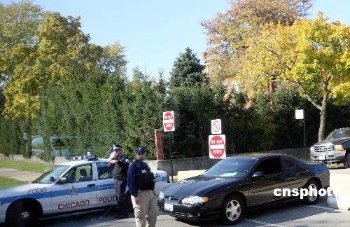 11月4日美國大選全民投票日,民主黨總統(tǒng)候選人奧巴馬位于伊利諾伊州芝加哥南部的住宅周圍安保措施十分嚴格。住宅周圍不僅有禁止通過和停車的標志,還有警員把守。中新社發(fā) 李靜 攝