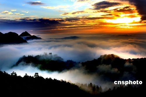 圖為廬山大天池夕照云海。中新社發(fā) 殷錫翔 攝