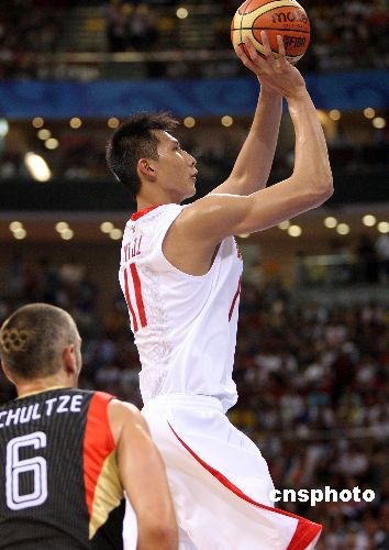 北京奧運(yùn)會(huì)男子籃球小組賽第四輪比賽中的易建聯(lián)。中新社發(fā) 任晨鳴 攝