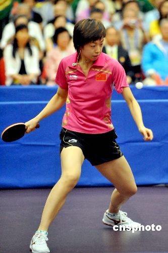 圖為奪得奧運(yùn)女單金牌的張怡寧在香港表演球技。中新社發(fā) 鄧慶樂(lè)