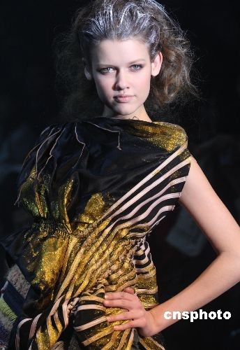 圖為模特展示2009春夏《長江系列》高級時裝發(fā)布新款。中新社發(fā) 錢興強(qiáng) 攝