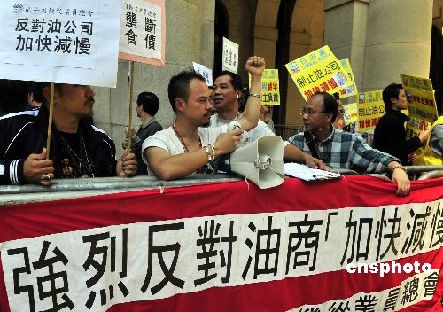 十一月十二日,香港立法會(huì)動(dòng)議辯論,要求政府加強(qiáng)監(jiān)管油公司價(jià)格。有團(tuán)體的代表,在立法會(huì)外請(qǐng)?jiān)。中新社發(fā) 譚達(dá)明 攝