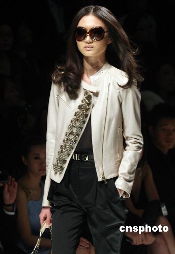 11月13日晚,意大利某著名時裝品牌在北京舉行中國的首場時裝發(fā)布會。圖為模特展示新款時裝。新社發(fā) 錢興強 攝