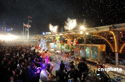 十一月十三日晚,香港海港城隆重舉行圣誕亮燈儀式,夢幻燈光及煙火效果吸引到大批市民及游客駐足觀看。中新社發(fā) 鄧慶樂 攝