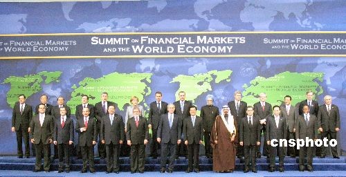 二十國集團領導人金融市場和世界經(jīng)濟峰會15日在美國首都華盛頓舉行,中國國家主席胡錦濤出席會議并發(fā)表重要講話,圖為各與會領導人在會前合影。中新社發(fā) 齊彬 攝